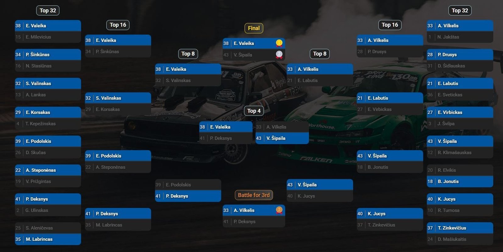 | # | Drifteris | Q1 | Q2 | Geriausias |