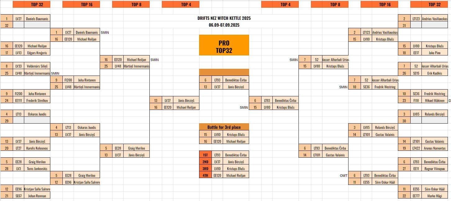 Top 8 susitiko Benediktas Čirba ir Gustas Valainis – į pusfinalį pateko ilgiau drifte važiuojantis Benas. Jis Top 4 įveikė Kristaps Blušs, o finale ir Jānis Bērziņš. B. Čirba užtikrintai pirmauja čempionate ir yra favoritas laimėti 2025-ųjų titulą.